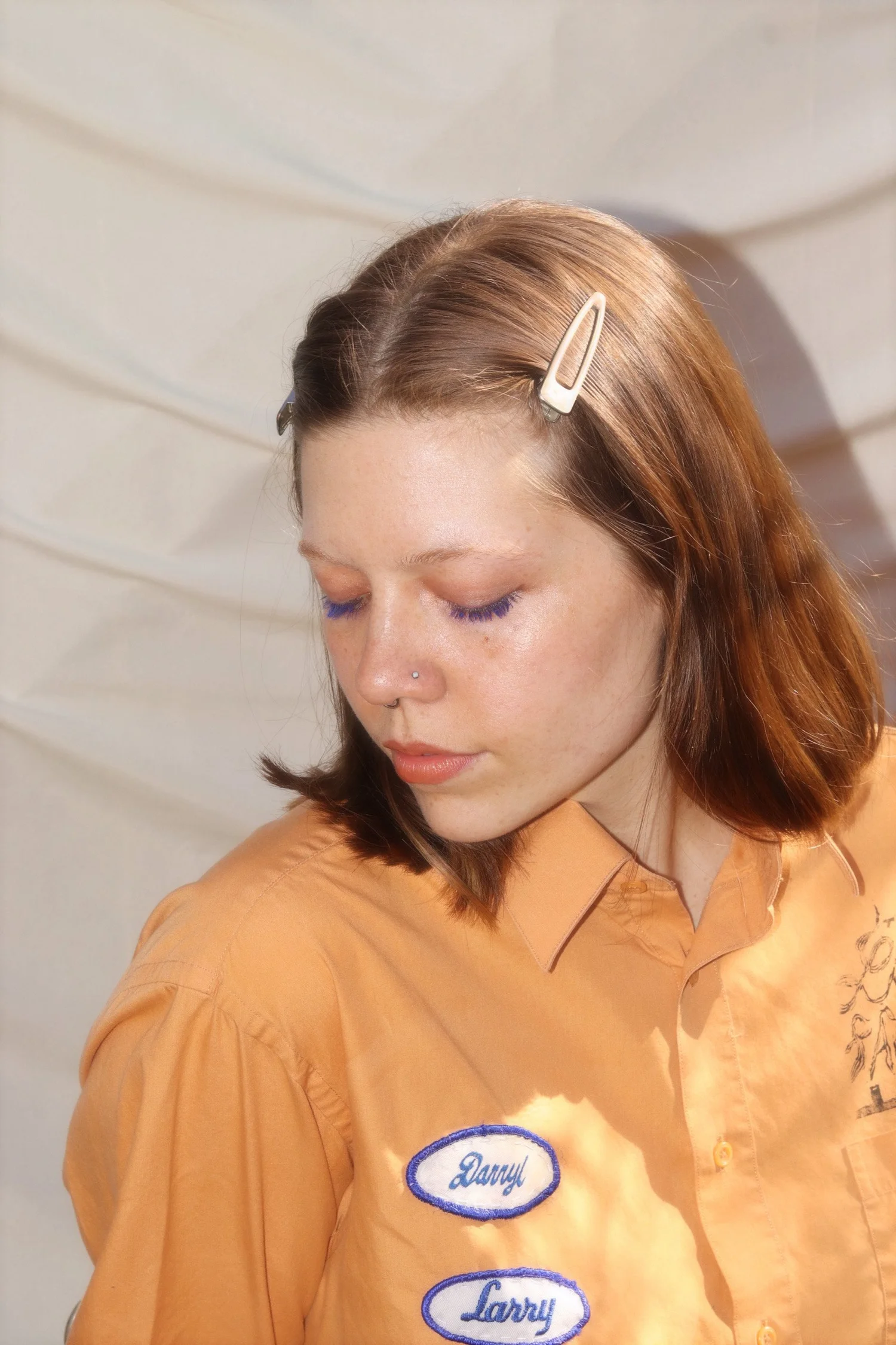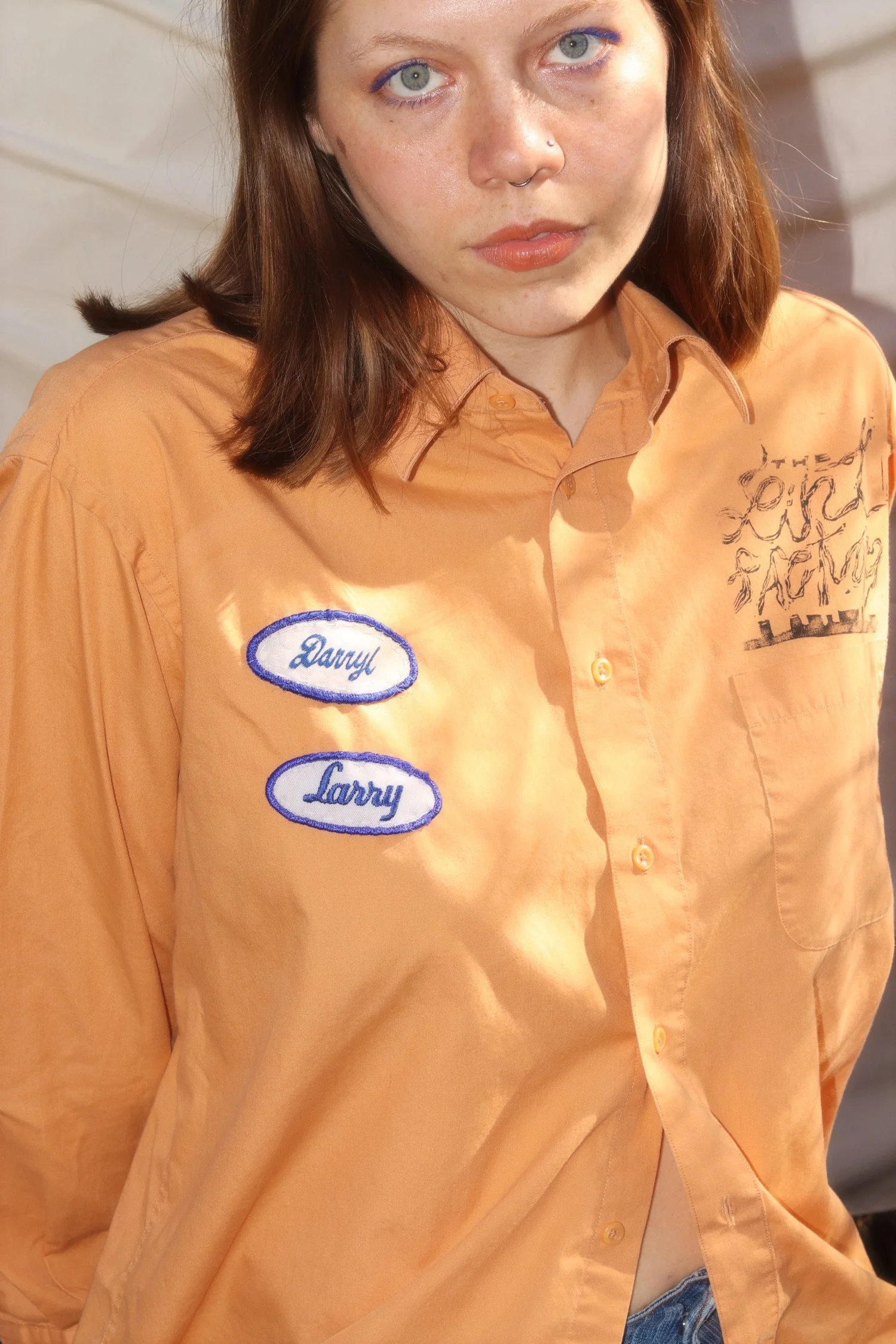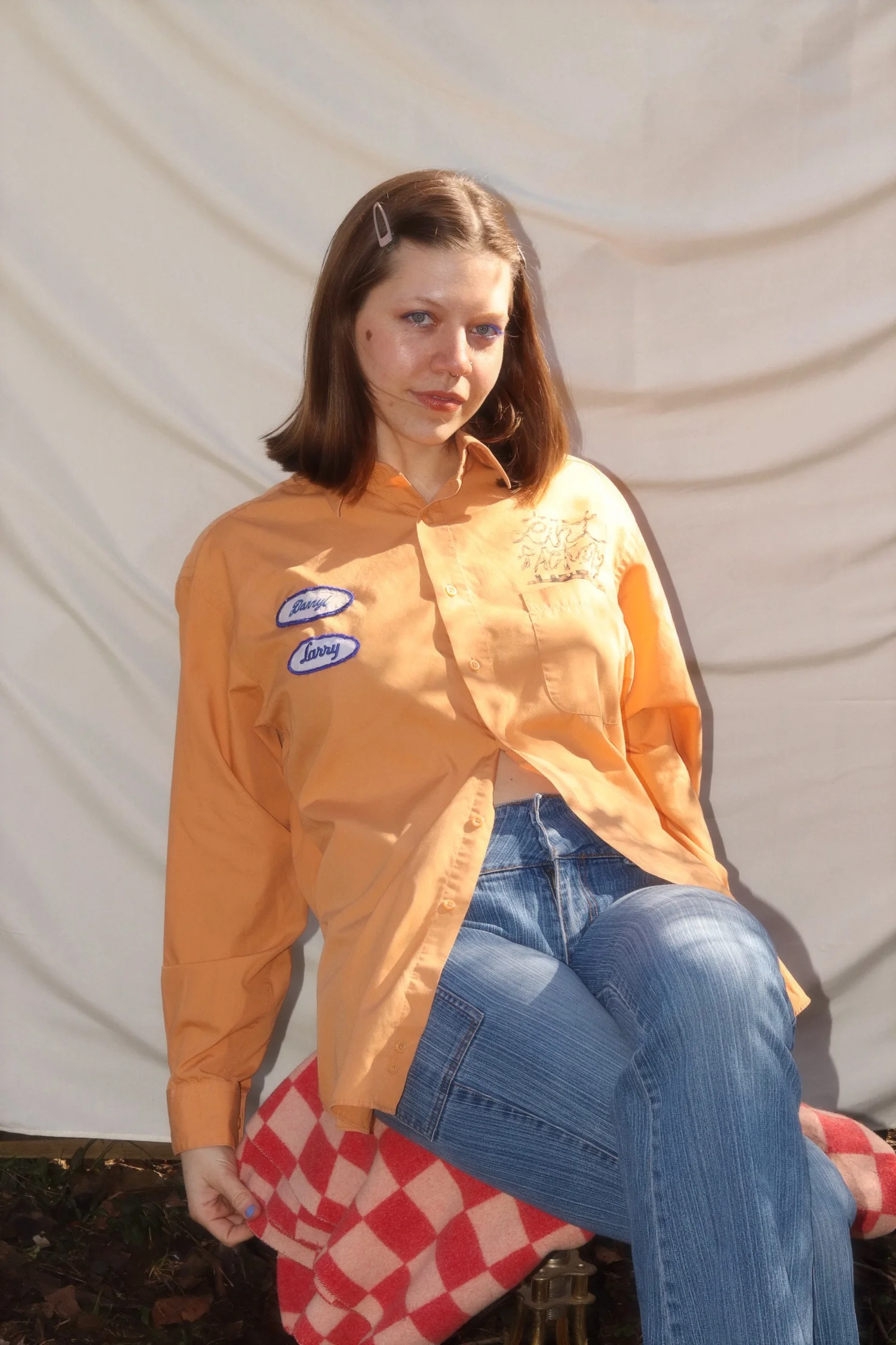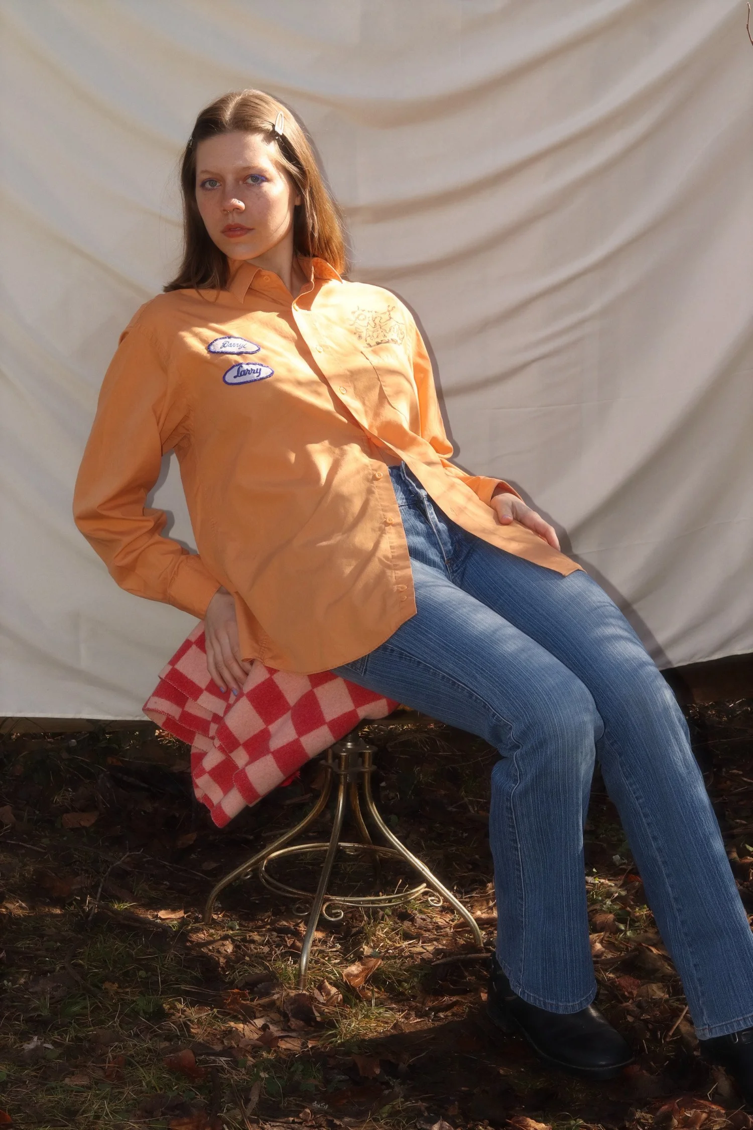 Vintage Orange Button Up hand printed with The Lint Factory Logo